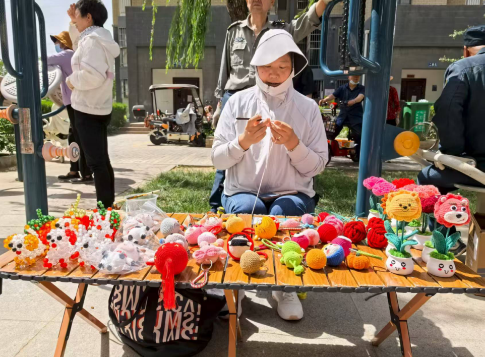 转机发生在女儿带来的一团毛线。当时社区征集手工制品,梁娟抱着试一试的心态拿起钩针,冰凉的金属触感意外让她平静下来。当第一个歪歪扭扭的小熊钥匙扣被邻居买走,握着带着体温的零钱时,她忽然感受到了生命的温度。