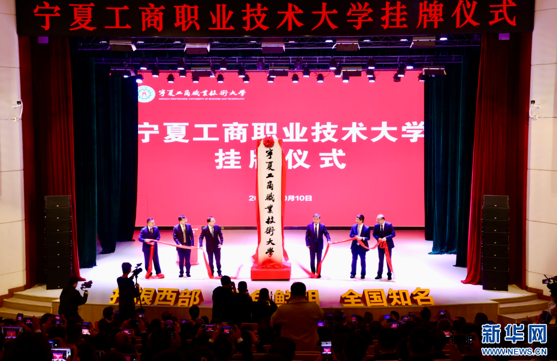 10月10日,宁夏工商职业技术大学挂牌仪式正式举行。升格后的宁夏工商职业技术大学为公办本科层次职业学校,首批设置应用化工技术、机械设计制造及自动化、电气工程及自动化、旅游管理、现代物流管理5个职业本科专业,全日制在校生规模暂定为8500人。